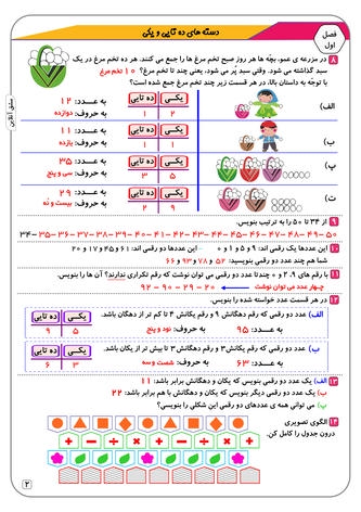 تمرینات مبحث به مبحث ریاضی پایه دوم