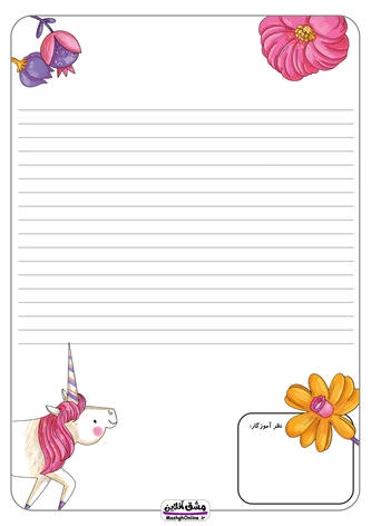 دفتر املا دخترانه طرح دار شامل 42 صفحه تمام رنگی با طرح های کاملا متفاوت و زیبا به همراه بخش نظرات توصیفی معلم مناسب برای دانش آموزان کلاس اول و دوم