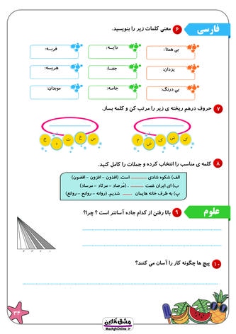 مشق آنلاین | کاربرگ و نمونه سوال | پیش دبستانی و دبستان